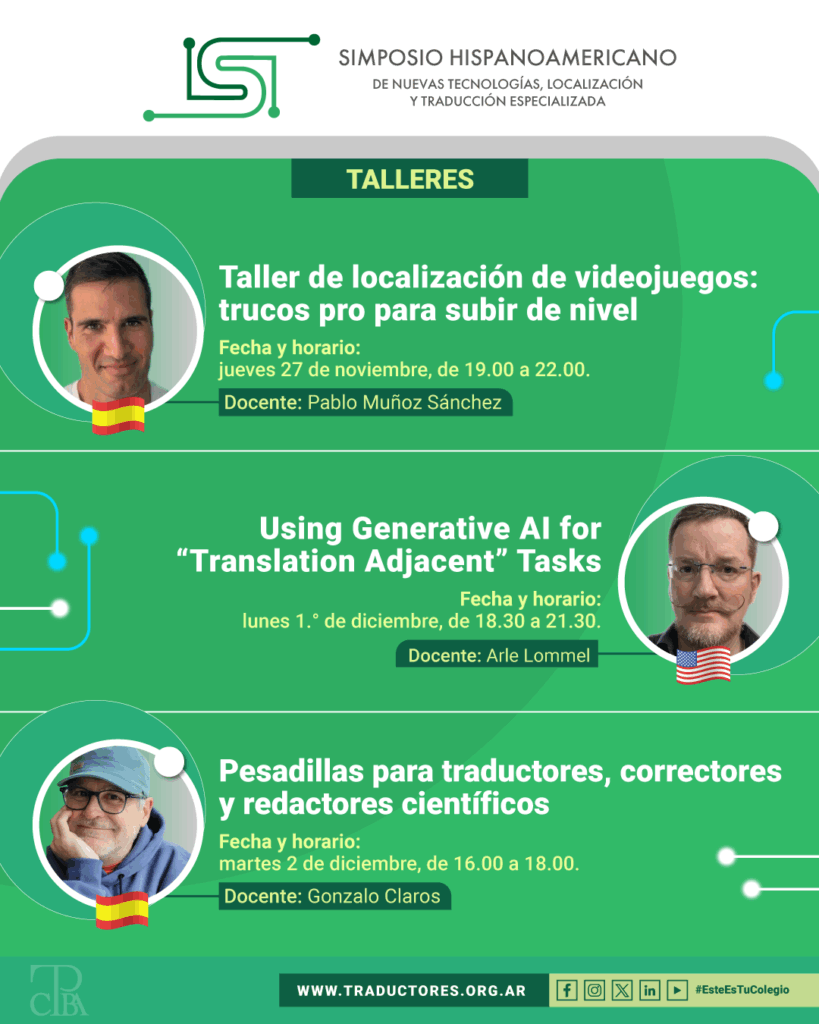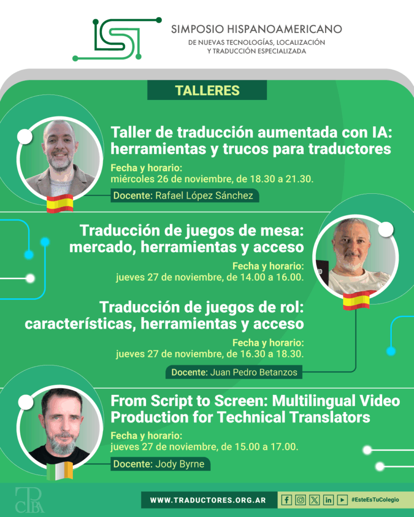 🤖💥 La traducción aumentada con inteligencia artificial, el control de calidad, la traducción de juegos de rol y juegos de mesa, la localización de videojuegos, la subtitulación con software libre, la elaboración de «prompts» y la traducción científico-técnica son solo algunos de los temas que se abordarán en los talleres del Simposio Hispanoamericano de Nuevas Tecnologías, Localización y Traducción Especializada.