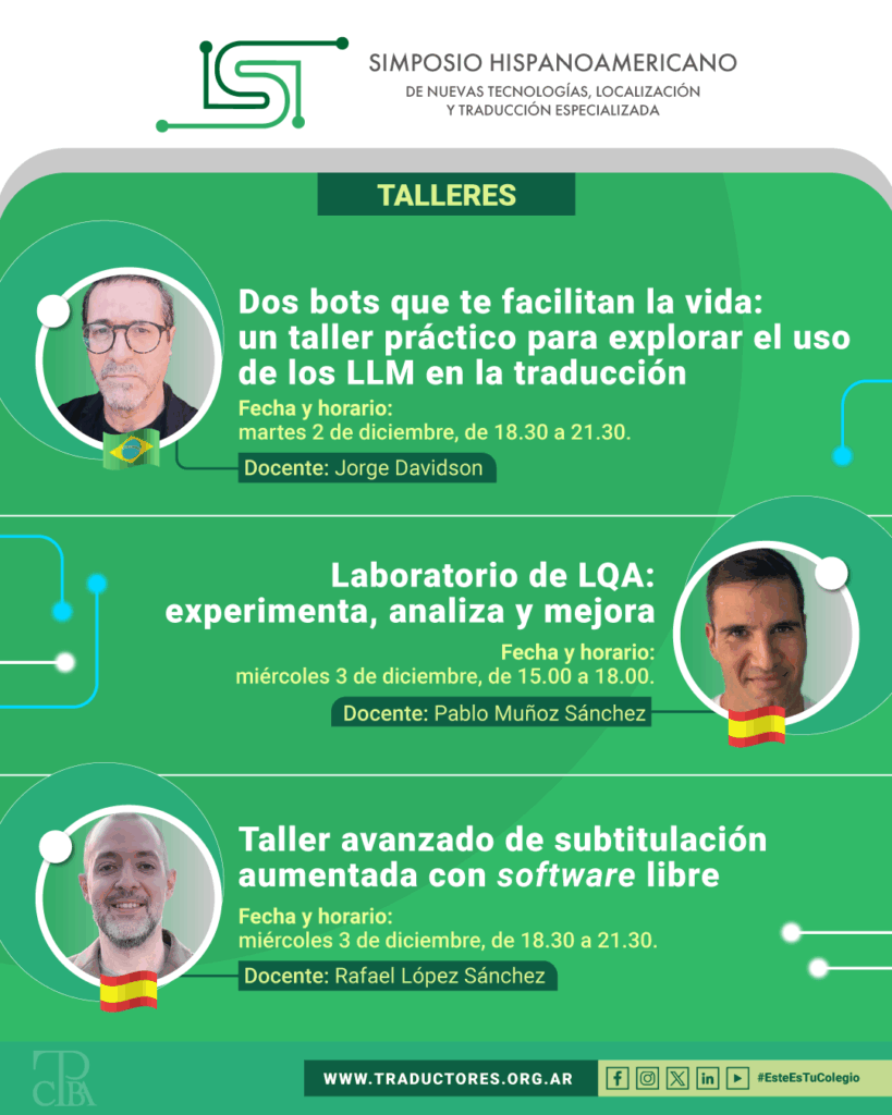 Talleres pre- y postsimposio Hispanoamericano de Nuevas Tecnologías, Localización y Traducción Especializada